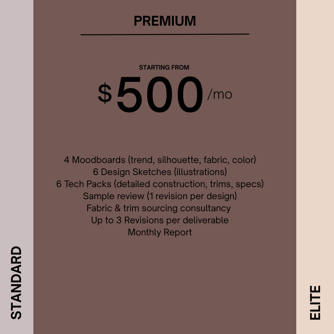 Starting your own clothing line is no simple task, but with the right planning and strategy, there are effective ways of bringing your product to market without breaking the bank. Work with us to uncover the viability of your line from start to finish. We’ll collaborate on the following areas so you are set up with a plan.